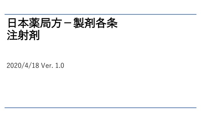 日本薬局方-製剤各条 注射剤 2020/4/18 Ver. 1.0
