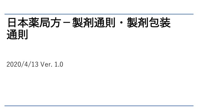 日本薬局方-製剤通則・製剤包装 通則 2020/4/13 Ver. 1.0