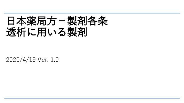 日本薬局方-製剤各条 透析に用いる製剤 2020/4/19 Ver. 1.0
