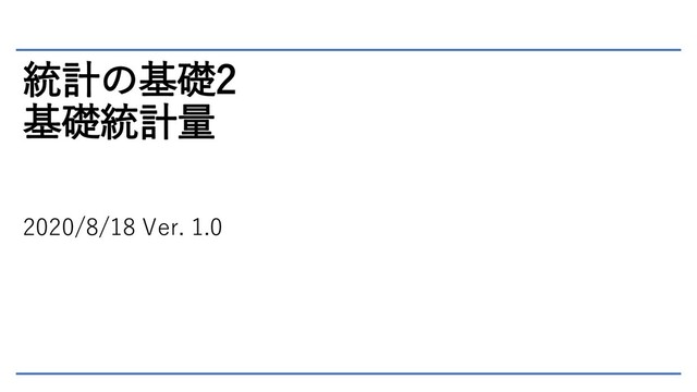 統計の基礎2 基礎統計量 2020/8/18 Ver. 1.0