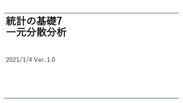 統計の基礎7 一元分散分析 2021/1/4 Ver. 1.0