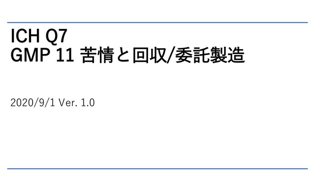 ICH Q7の第15章は苦情と回収、16章は委託製造に関するガイドラインとなっています。苦情と回収はGMP、GQP省令の品質情報に対応し、委託製造については基本的にGQP省令で対応するため、GMP省令上には記載がないものです。