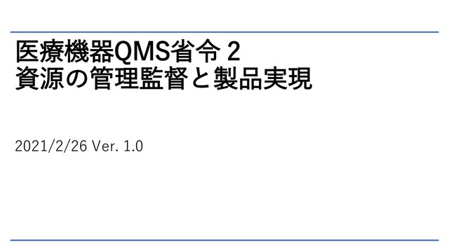 医療機器及び体外診断用医薬品の製造管理及び品質管理の基準に関する省令(Quality Management Systems、QMS省令)は医薬品のGQPに当たる省令で、薬機法第23条に医療機器の製造販売承認の条件として定められているものです。2では、資源の管理監督と製品実現についてまとめています。