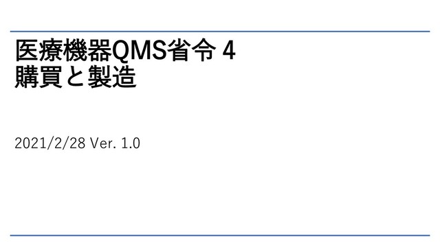 医療機器及び体外診断用医薬品の製造管理及び品質管理の基準に関する省令(Quality Management Systems、QMS省令)は医薬品のGQPに当たる省令で、薬機法第23条に医療機器の製造販売承認の条件として定められているものです。4では、医療機器製造に関する購買と製造についてまとめています。
