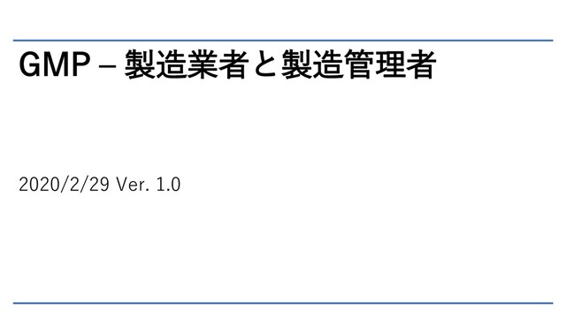GMP – 製造業者と製造管理者 2020/2/29 Ver. 1.0