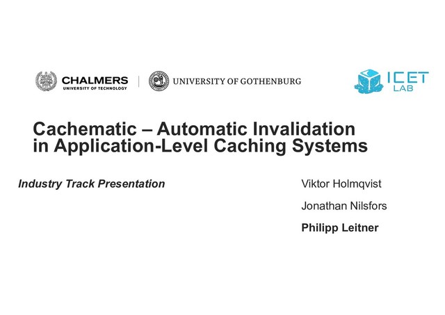 Improves cache hit rate and read performance (w.r.t. manual cache management solution) However: negative impact on write requests Although acceptable for Bison, Cachematic is not (yet) a general solution for all applications
