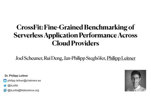Eismann, S. Talluri, E. van Eyk, C. Abad, P. Leitner, and A. Iosup, “Let’s trace it: Fine-grained serverless benchmarking using synchronous and asynchronous orchestrated applications,” doi:10.48550/ARXIV.2205.07696, 2022. Used tooling: https://github.com/ServiBench/ReplicationPackage/tree/main/servi-bench Survey of other research on function benchmarking: J. Scheuner and P. Leitner, “Function-as-a-service performance evaluation: A multivocal literature review,” Journal of Systems and Software (JSS), vol. 170, 2020. SPEC RG Cloud https://research.spec.org/working-groups/rg-cloud/