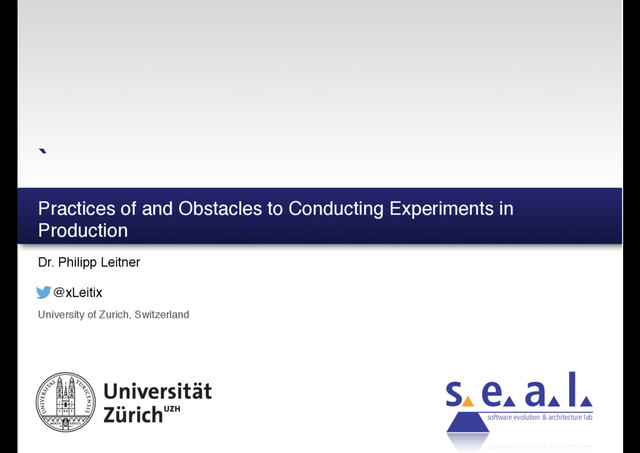 2007. Practical guide to controlled experiments on the web: listen to your customers not to the hippo. In Proceedings of the 13th ACM SIGKDD international conference on Knowledge discovery and data mining (KDD '07). ACM, New York, NY, USA, 959-967. Case studies from Microsoft Dror G. Feitelson, Eitan Frachtenberg, Kent L. Beck, "Development and Deployment at Facebook," IEEE Internet Computing, vol. 17, no. 4, pp. 8-17, July-Aug., 2013 Case study from Facebook T.Savor, M.Douglas, M.Gentili, L.Williams, K.Beck, and M.Stumm. Continuous Deployment at Facebook and OANDA. In Proceedings of the 38th International Conference on Software Engineering Companion, ICSE ’16, pages 21–30, New York, NY, USA, 2016. ACM. Case studies from Facebook and OANDA Chunqiang Tang, Thawan Kooburat, Pradeep Venkatachalam, Akshay Chander, Zhe Wen, Aravind Narayanan, Patrick Dowell, and Robert Karl. 2015. Holistic configuration management at Facebook. In Proceedings of the 25th Symposium on Operating Systems Principles (SOSP '15). ACM, New York, NY, USA, 328-343.