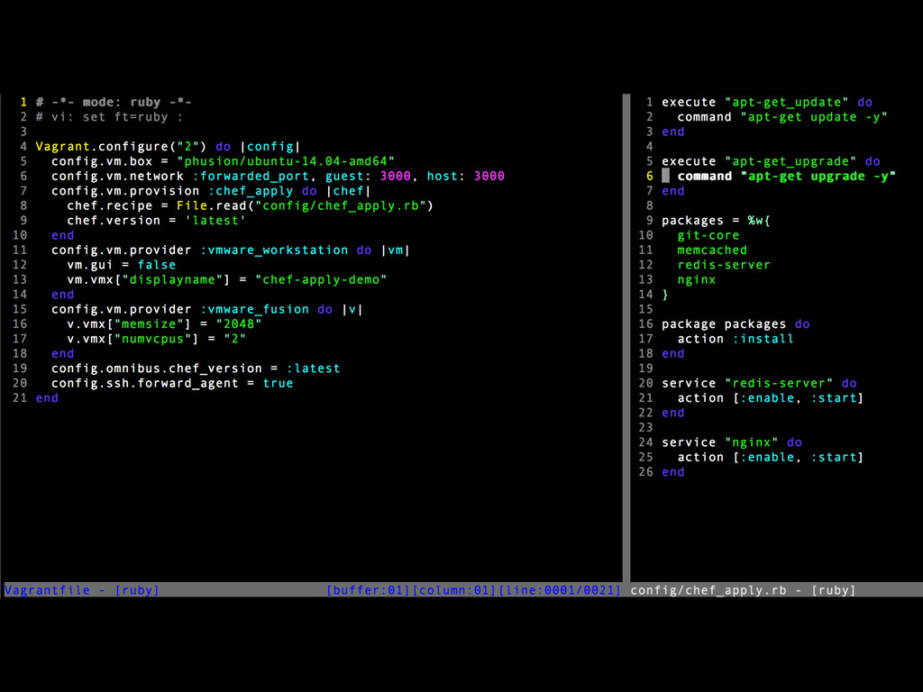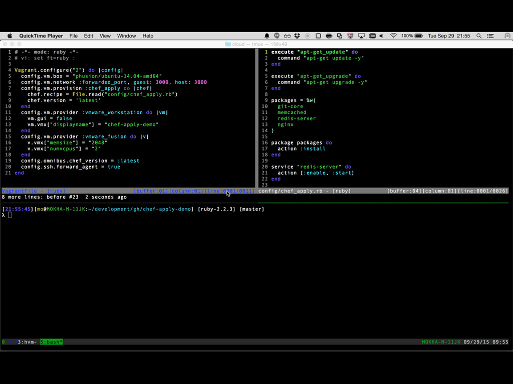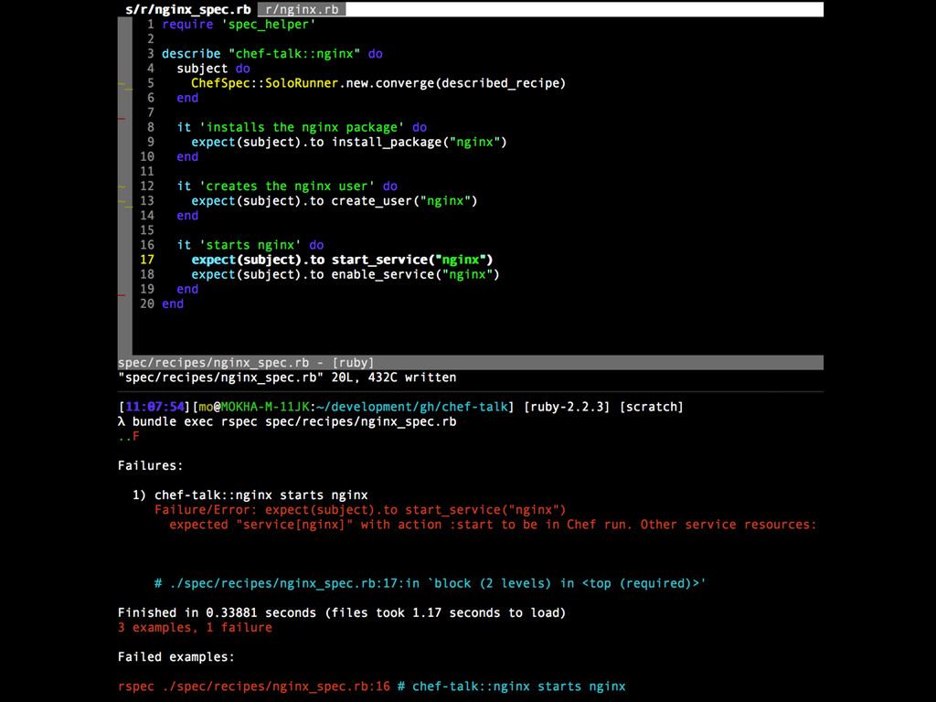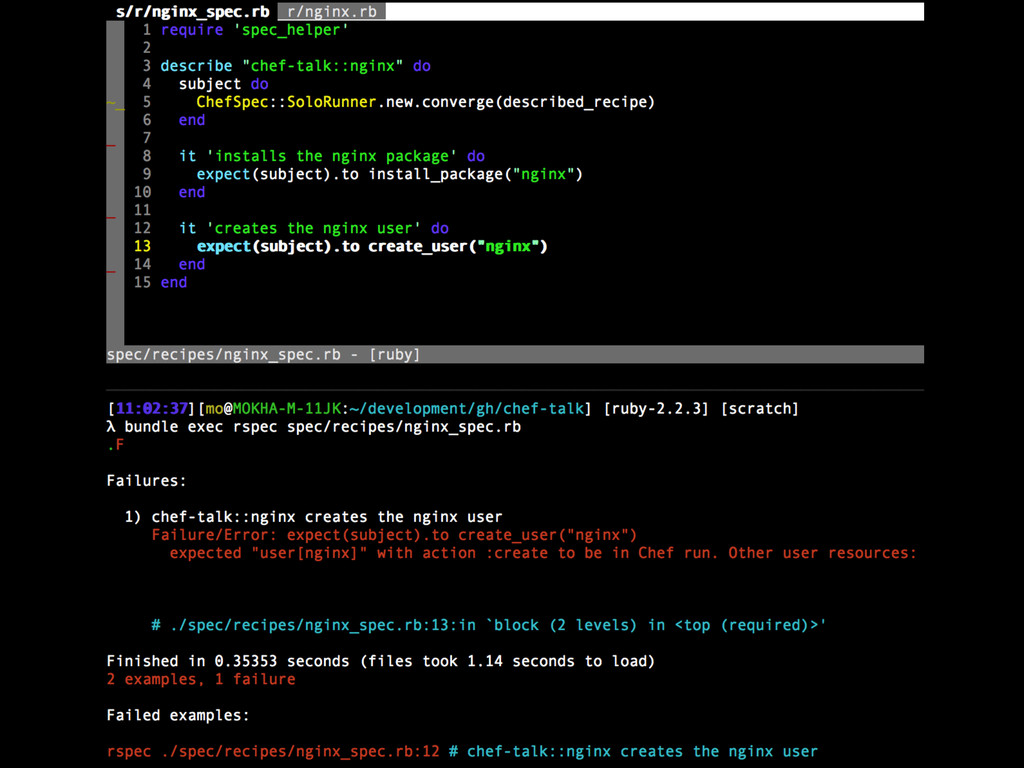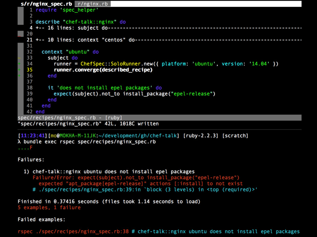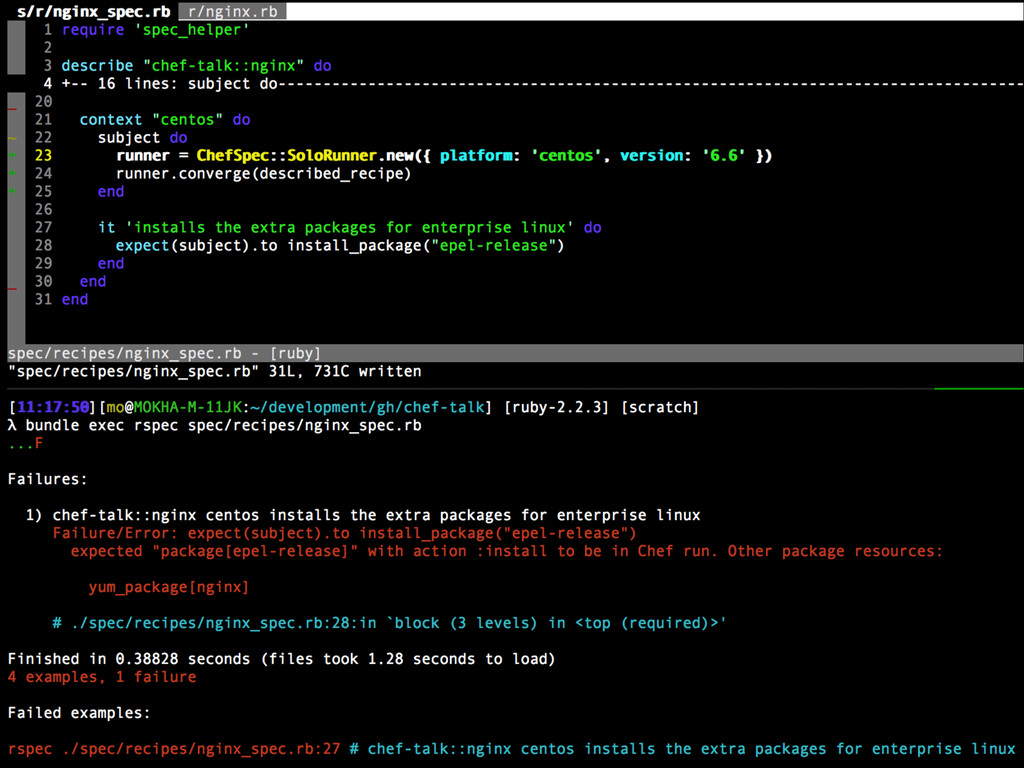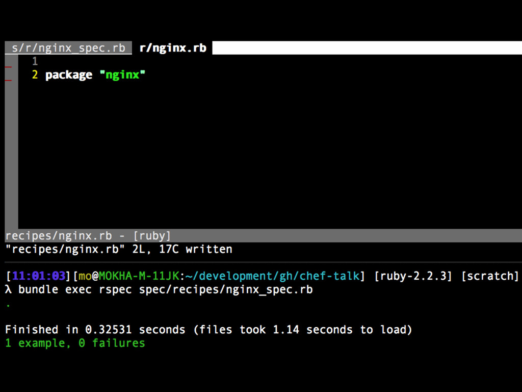 instances. • kitchen login: ssh session to a test instance. • kitchen converge: sync changes from disk and run chef on the test instance. • kitchen verify: sync changes from disk and run tests. • kitchen destroy: destroy the test instance. • kitchen test: converge, verify, destroy