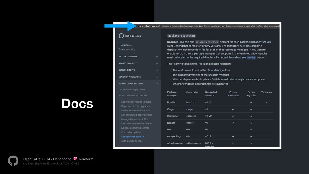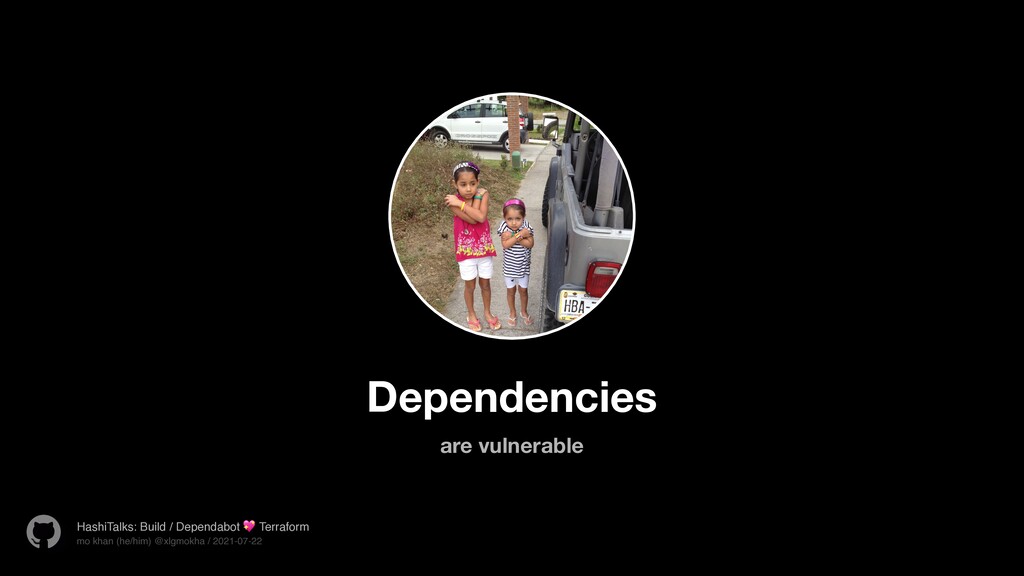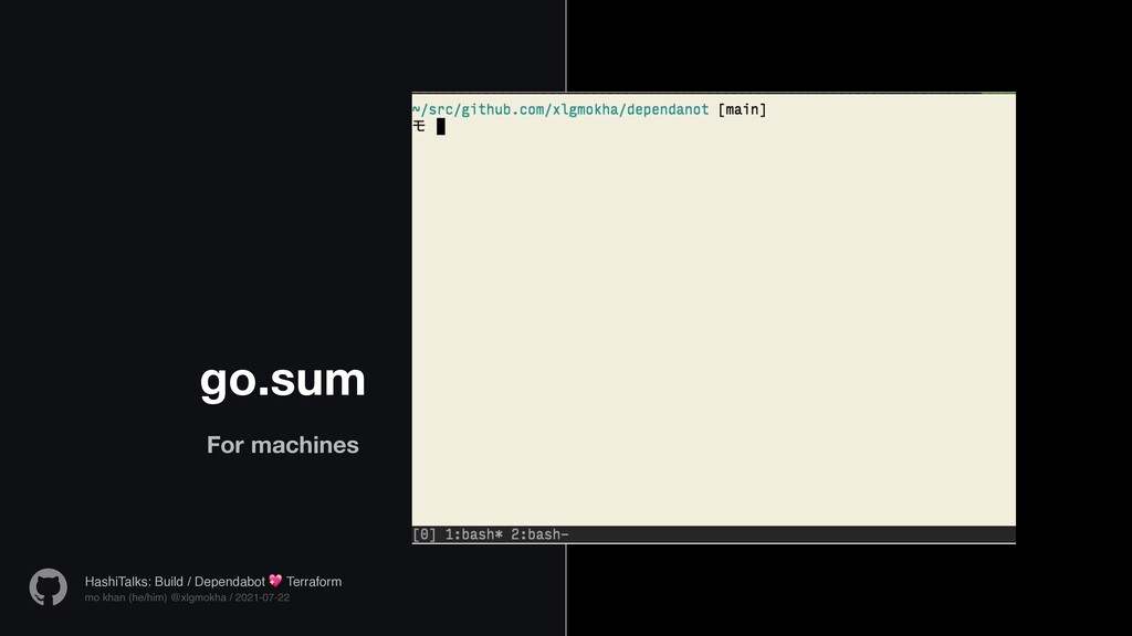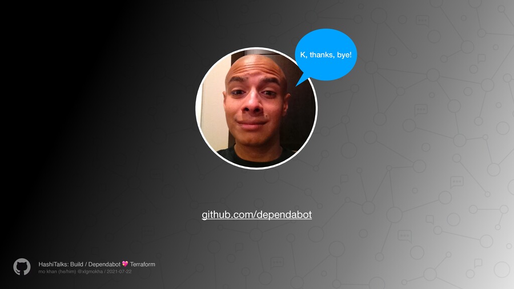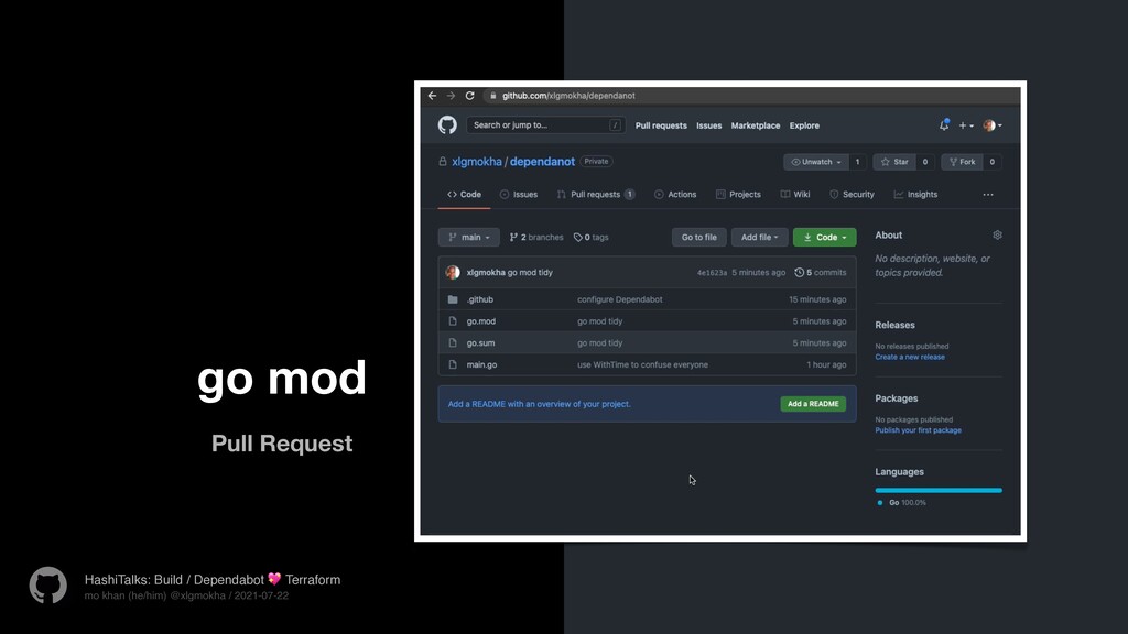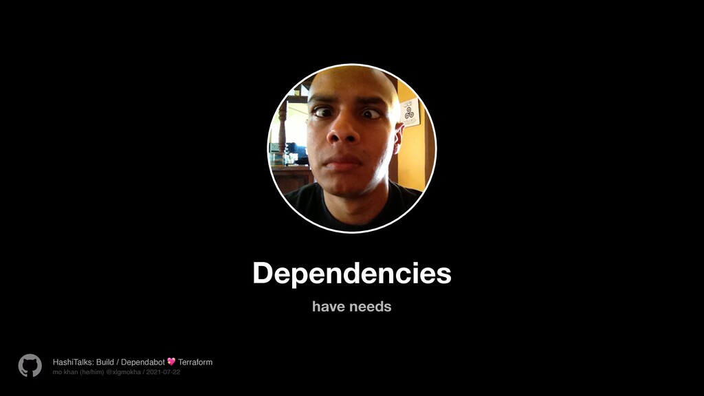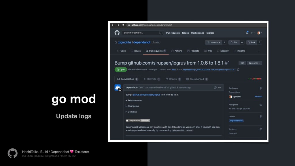 HashiTalks: Build / Dependabot 💖 Terraform mo khan (he/him) @xlgmokha