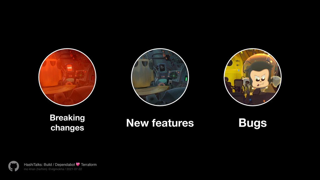 Breaking changes New features Bugs HashiTalks: Build / Dependabot 💖