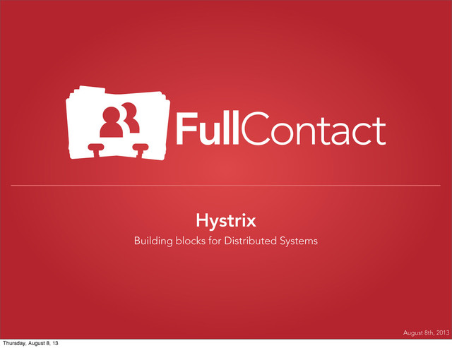 lists. If ElasticSearch is dead, we’re down. If we isolated with Hystrix, we could disable search functionality and still allow basic browsing of contacts directly from MySQL. Concrete example: Thursday, August 8, 13