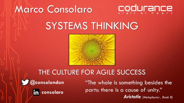 These principles are formalised in General Systems Theory and inspired many in thinking in terms of systems. In this presentation I go through the main concepts with real life examples, showing why they should be the primary cultural reference for organisations wishing to implement Agile successfully.