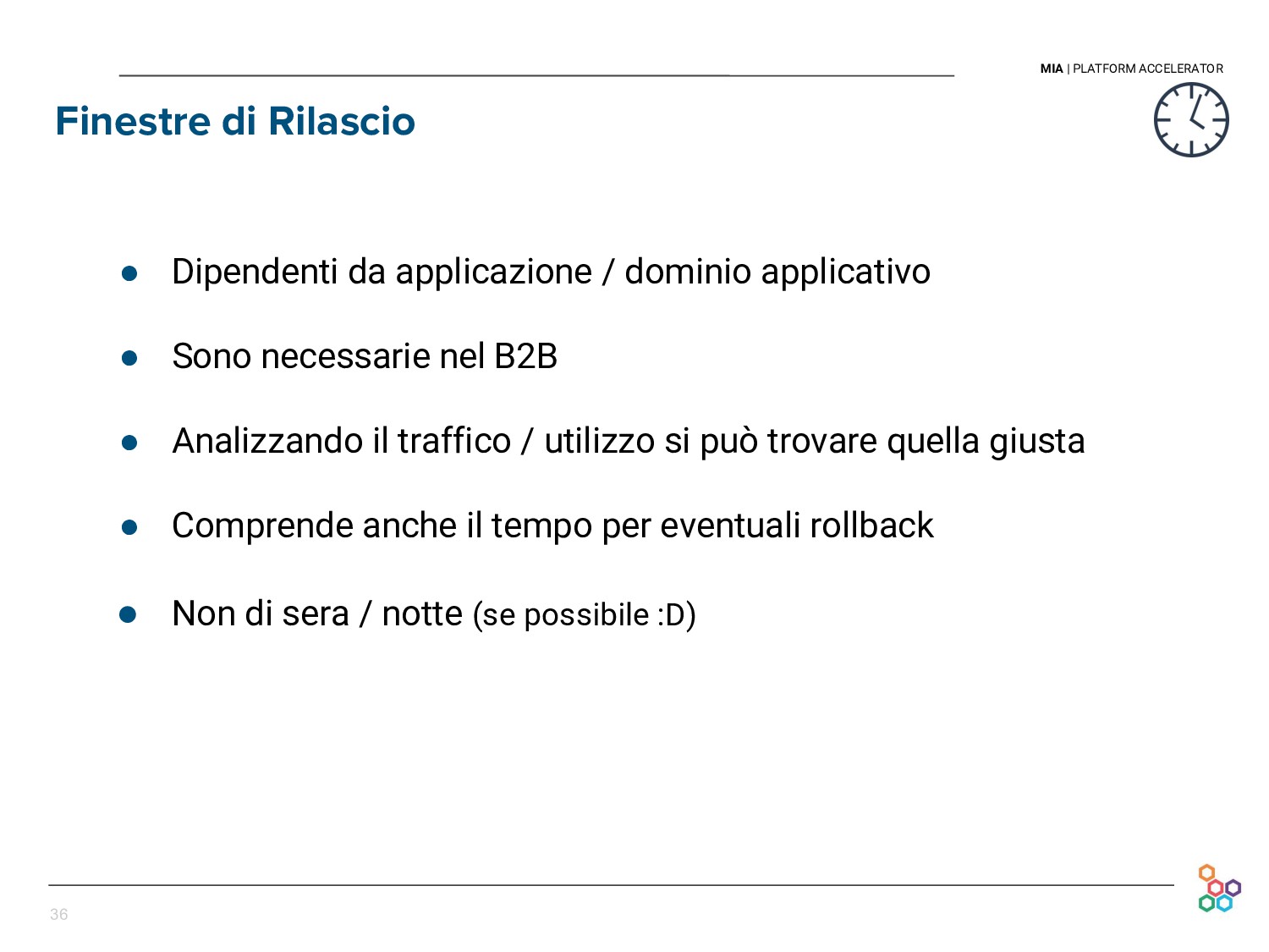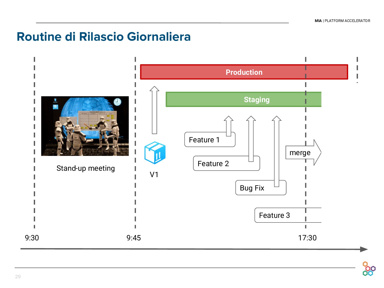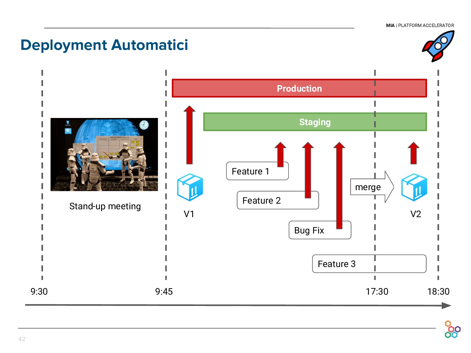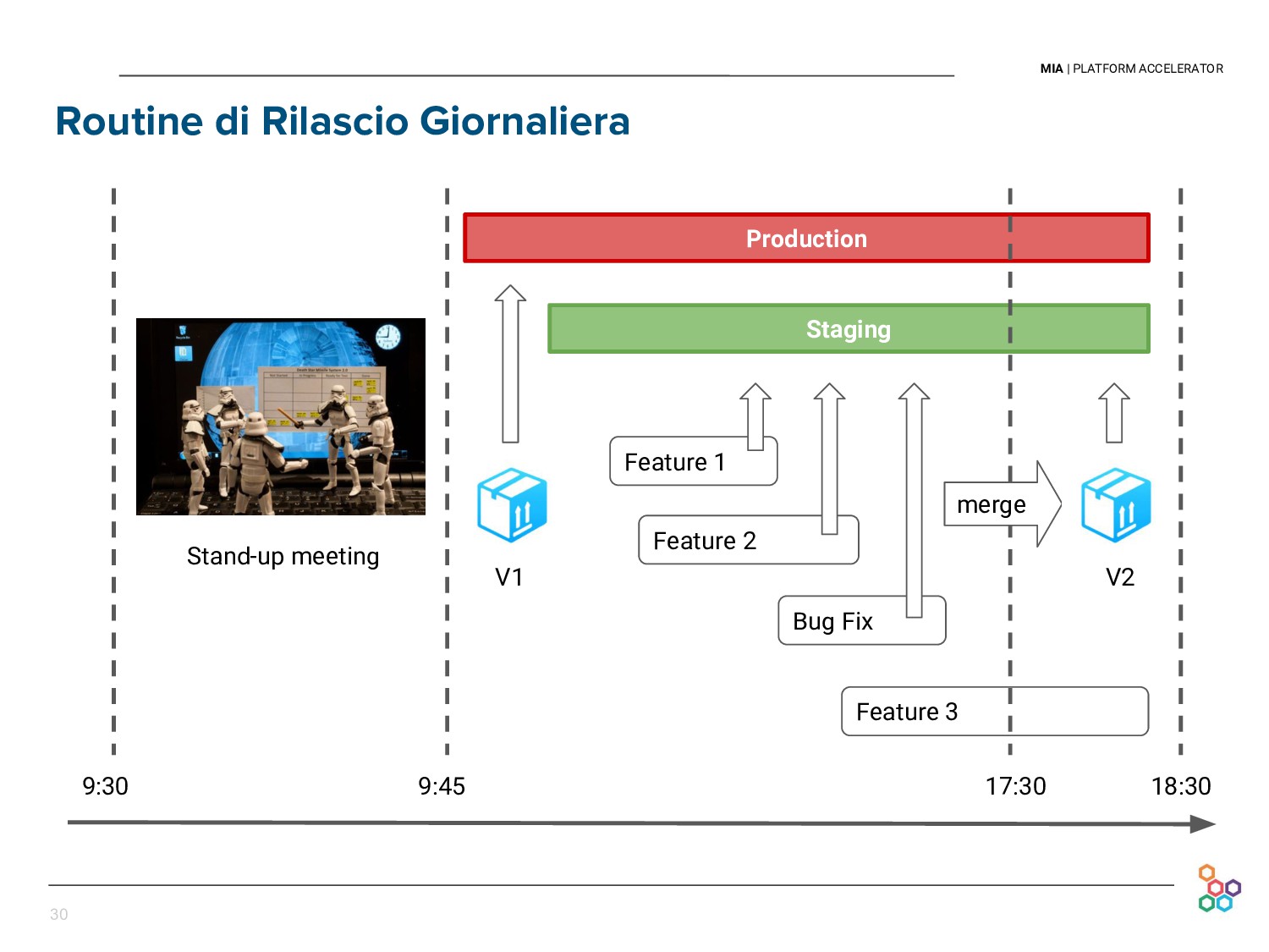 This talk presents the experience and lessons learned at Mia-platform in setting up our Continuous Delivery pipeline. We will discuss how we cope with the difficulties of releasing every day our API Platform, in a sustainable and persistent way, and without discontinuing our clients' businesses.