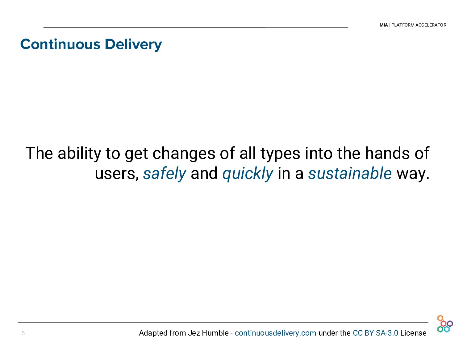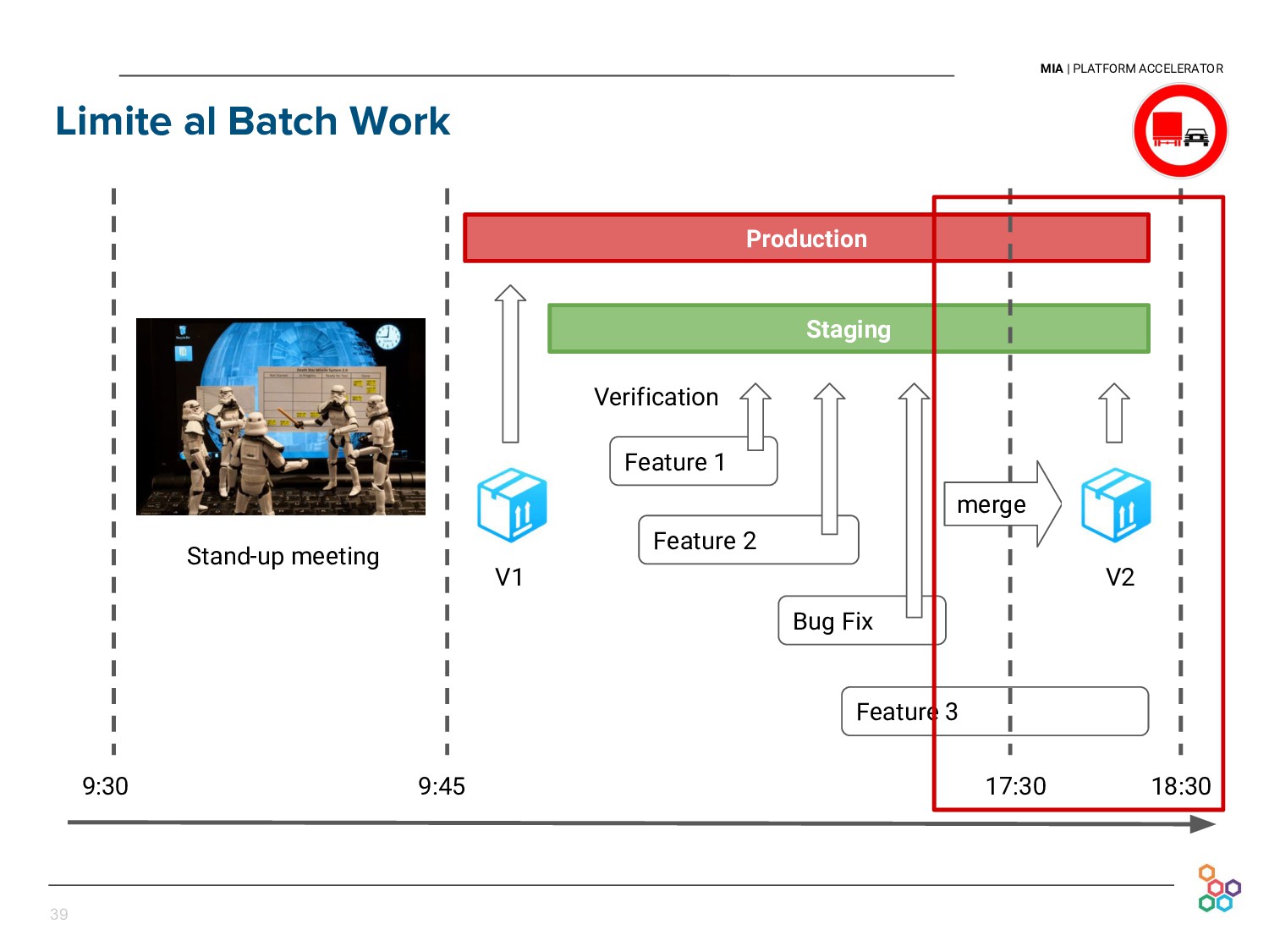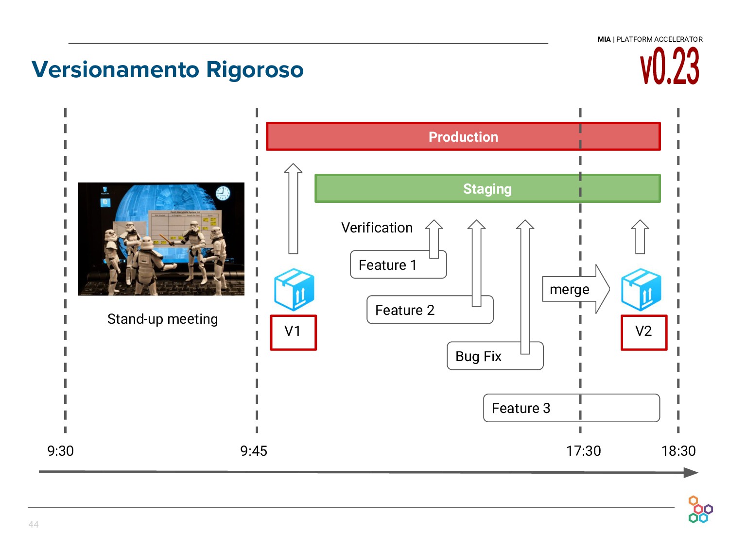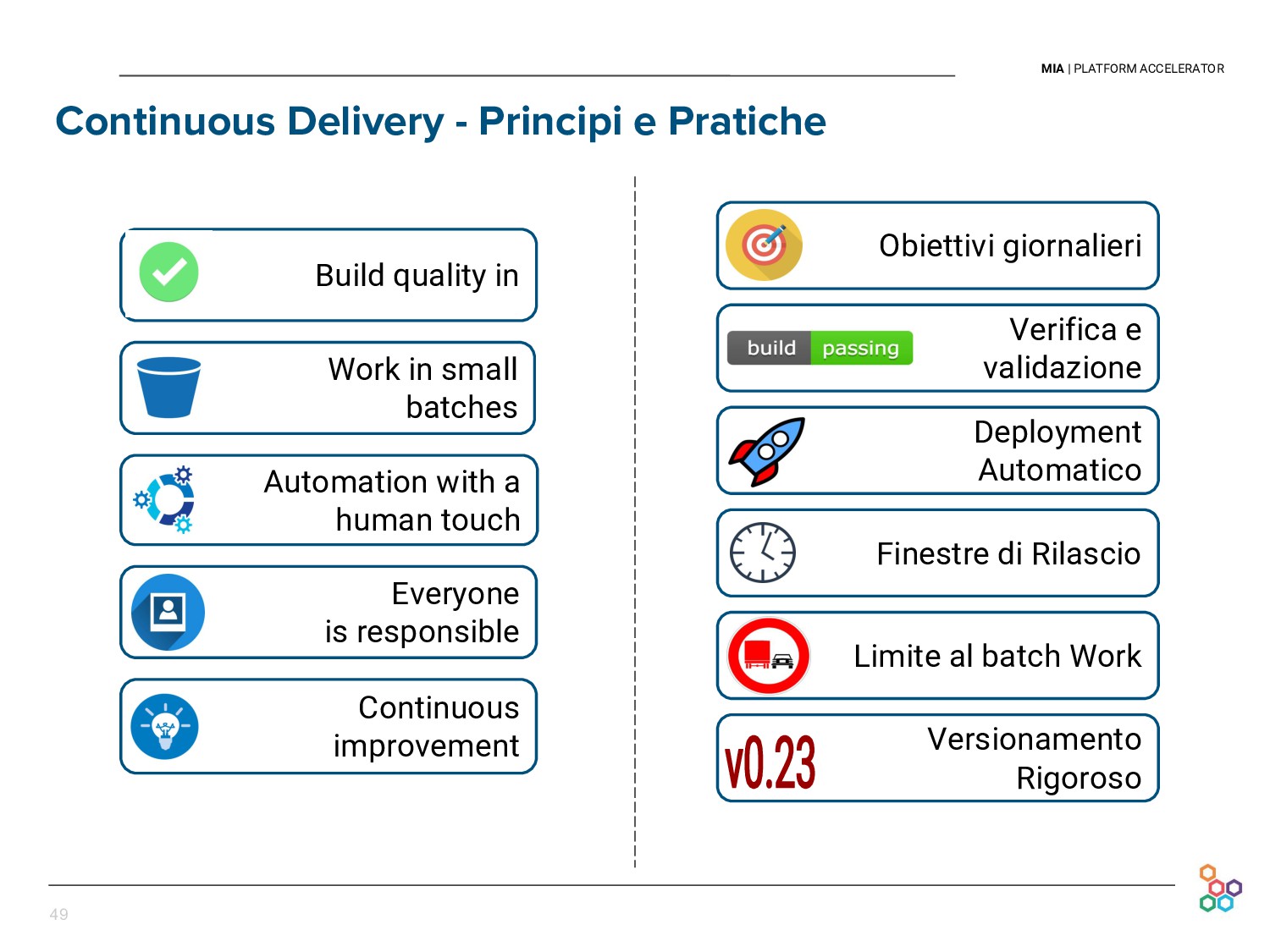 This talk presents the experience and lessons learned at Mia-platform in setting up our Continuous Delivery pipeline. We will discuss how we cope with the difficulties of releasing every day our API Platform, in a sustainable and persistent way, and without discontinuing our clients' businesses.