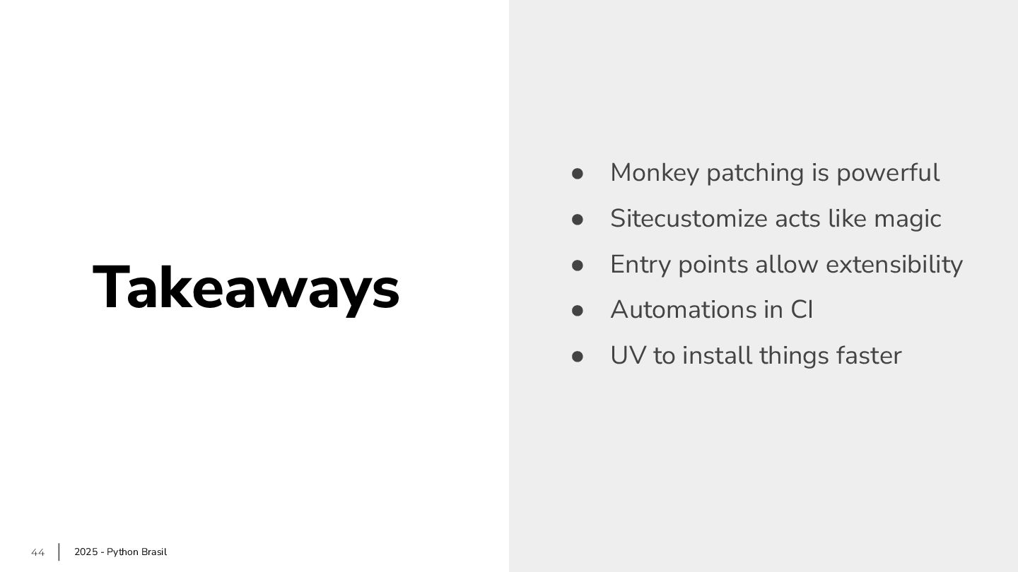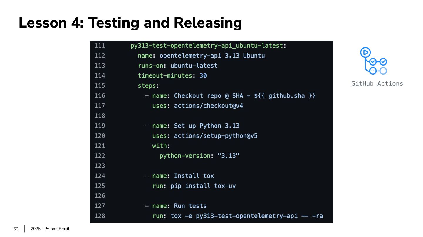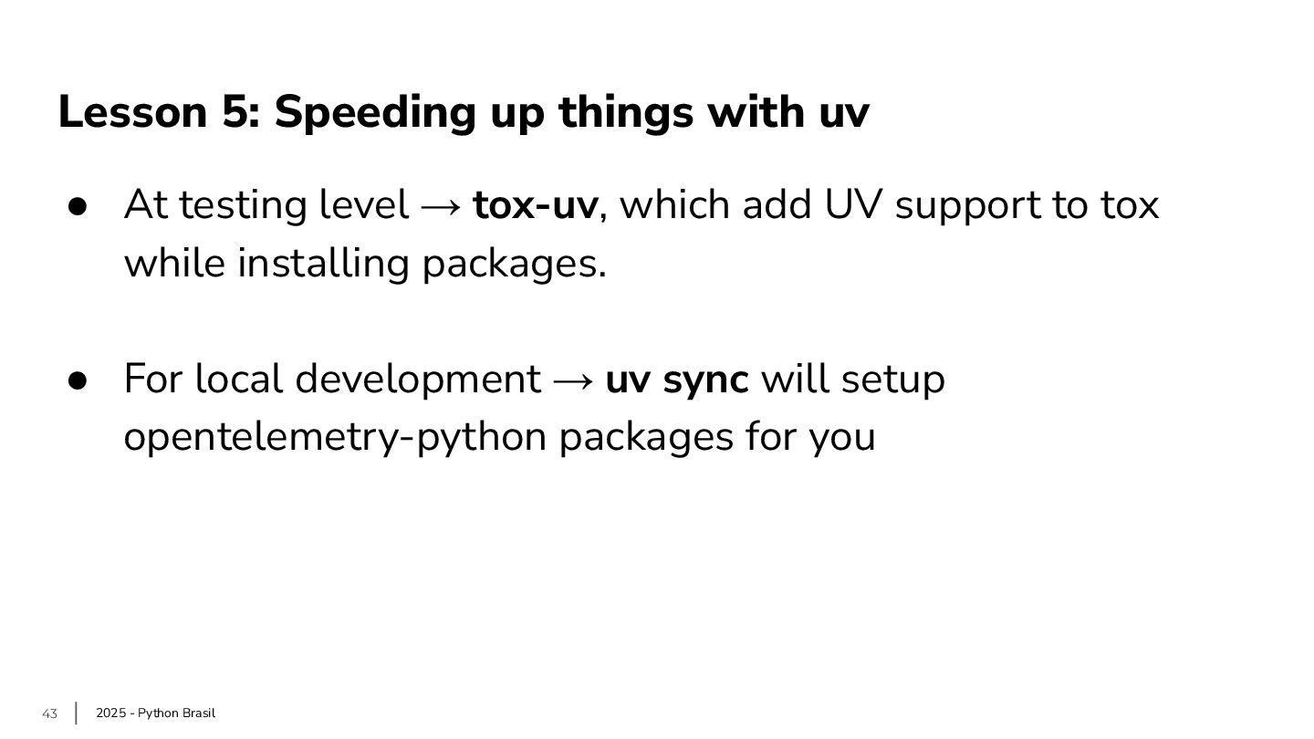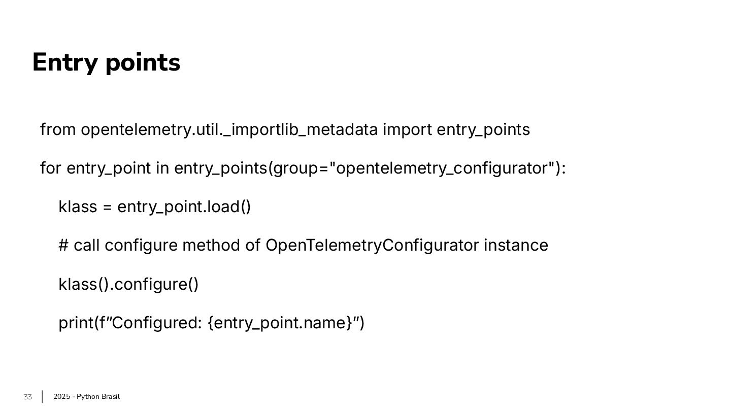 OpenTelemetry Python is a SIG (Special Interest Group) that develops and manages the Python implementation of OpenTelemetry, the second-highest velocity project in the CNCF landscape (only behind Kubernetes). This group delivers a vendor-neutral observability solution, building over 80 Python packages and counting more than 500M downloads per month. This makes it a peculiar project with interesting technical challenges and scales to share the lessons learned. Presented with Emidio Neto at Python Brasil 2025.