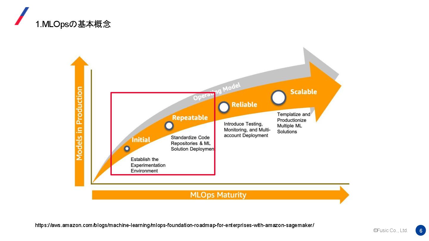 ©Fusic Co., Ltd. 6 1.MLOpsの基本概念 https://aws.amazon.com/blogs/machine-learning/mlops-foundation-roadmap-for-enterprises-with-amazon-sagemaker/