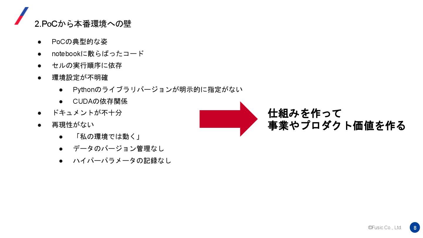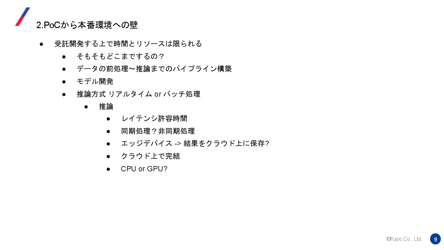 ©Fusic Co., Ltd. 7 PoCから本番環境への壁 2