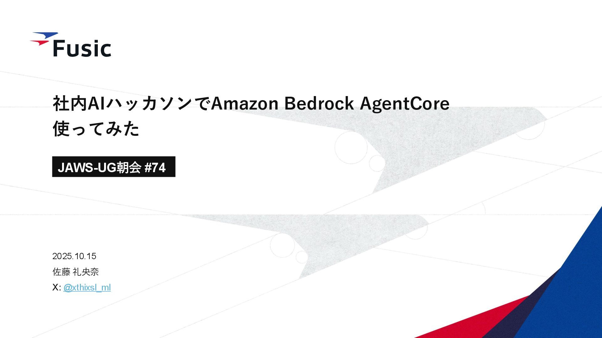 ©Fusic Co., Ltd. 0 社内AIハッカソンでAmazon Bedrock AgentCore 使ってみた 2025.10.15 佐藤