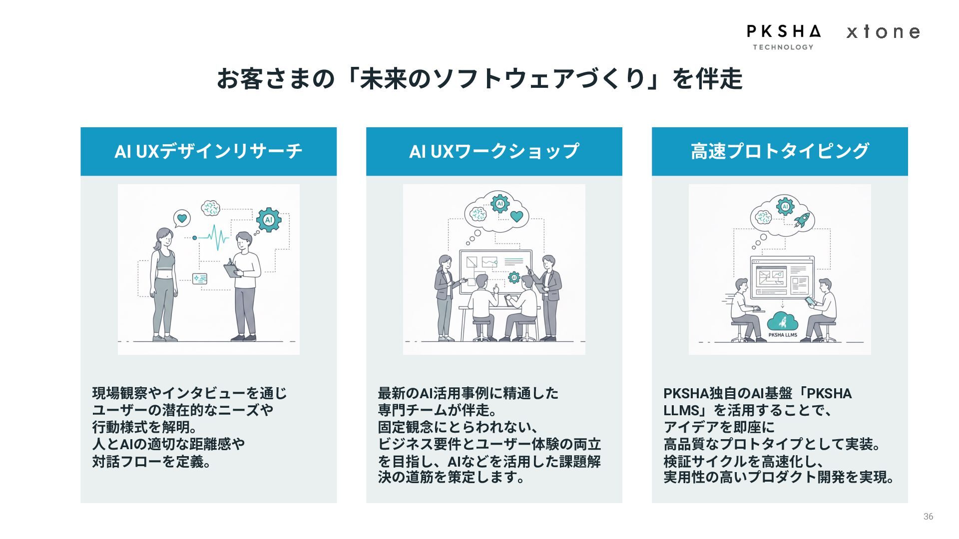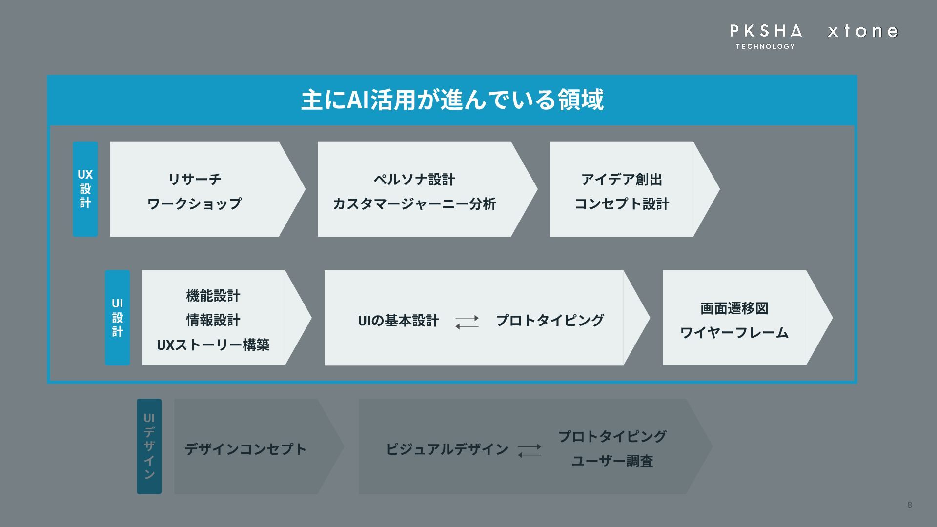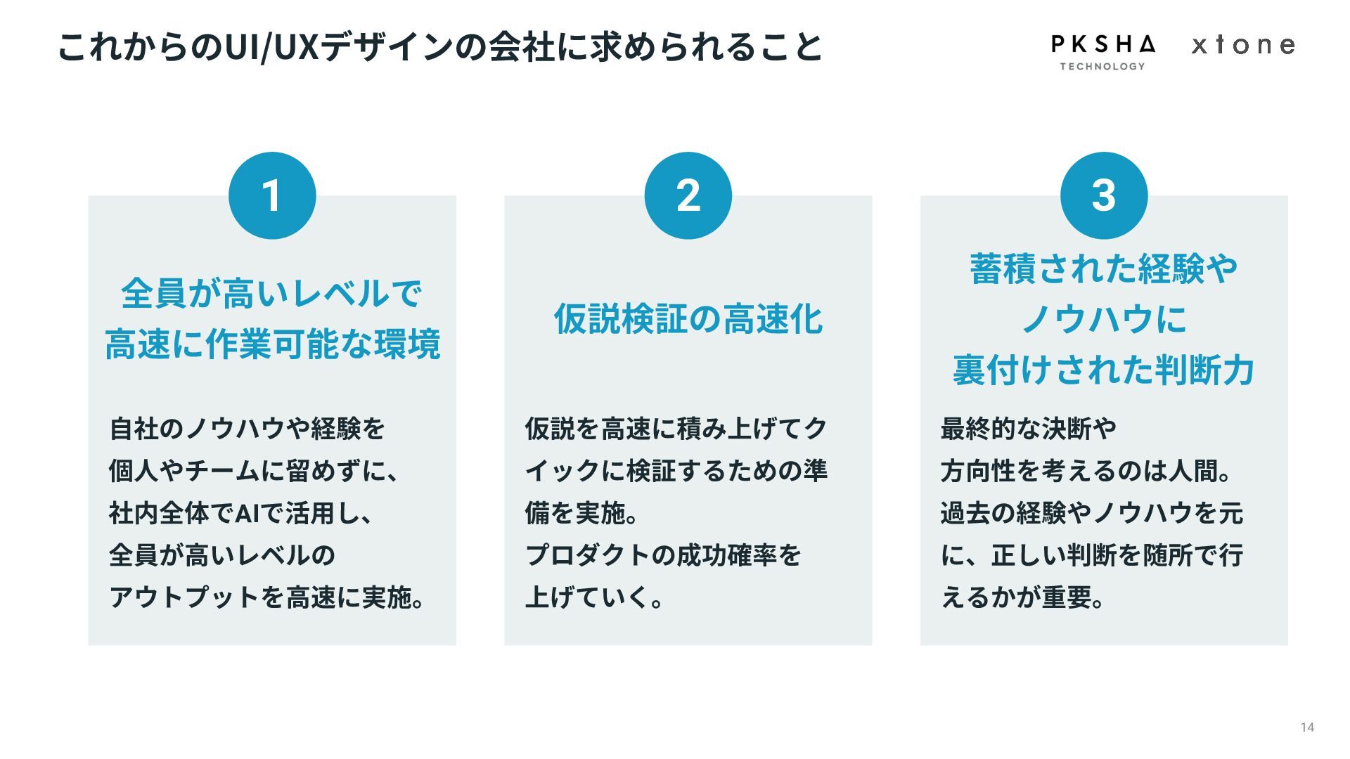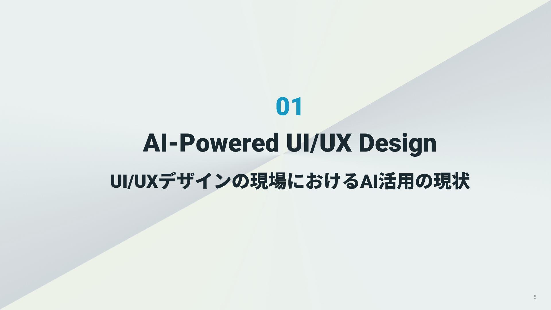 01. UI/UXデザインの現場におけるAI活用の現状 02. AI時代におけるUXデザイン変化 03. AIプロダクトのUXデザインのアプローチ 04. PKSHA Technologyグループでのワンストップ支援