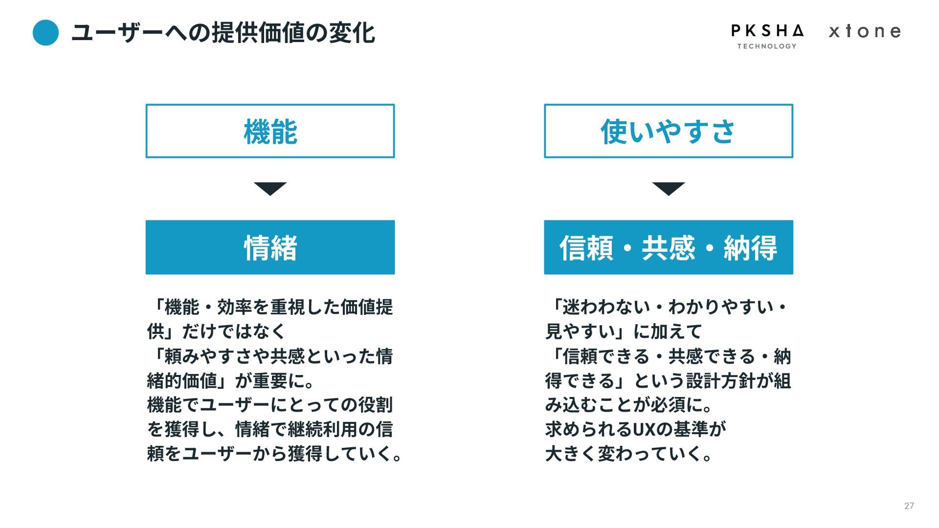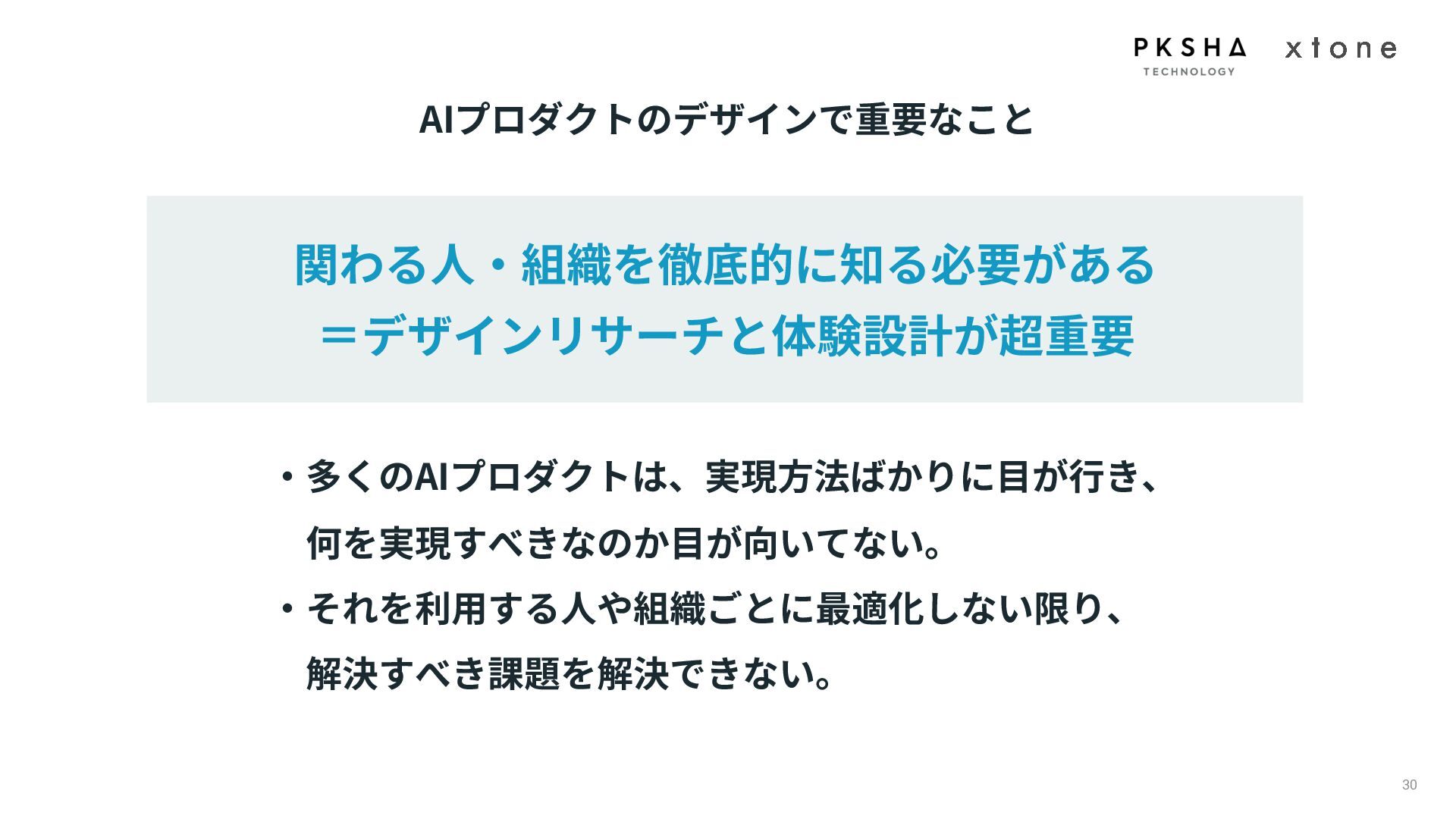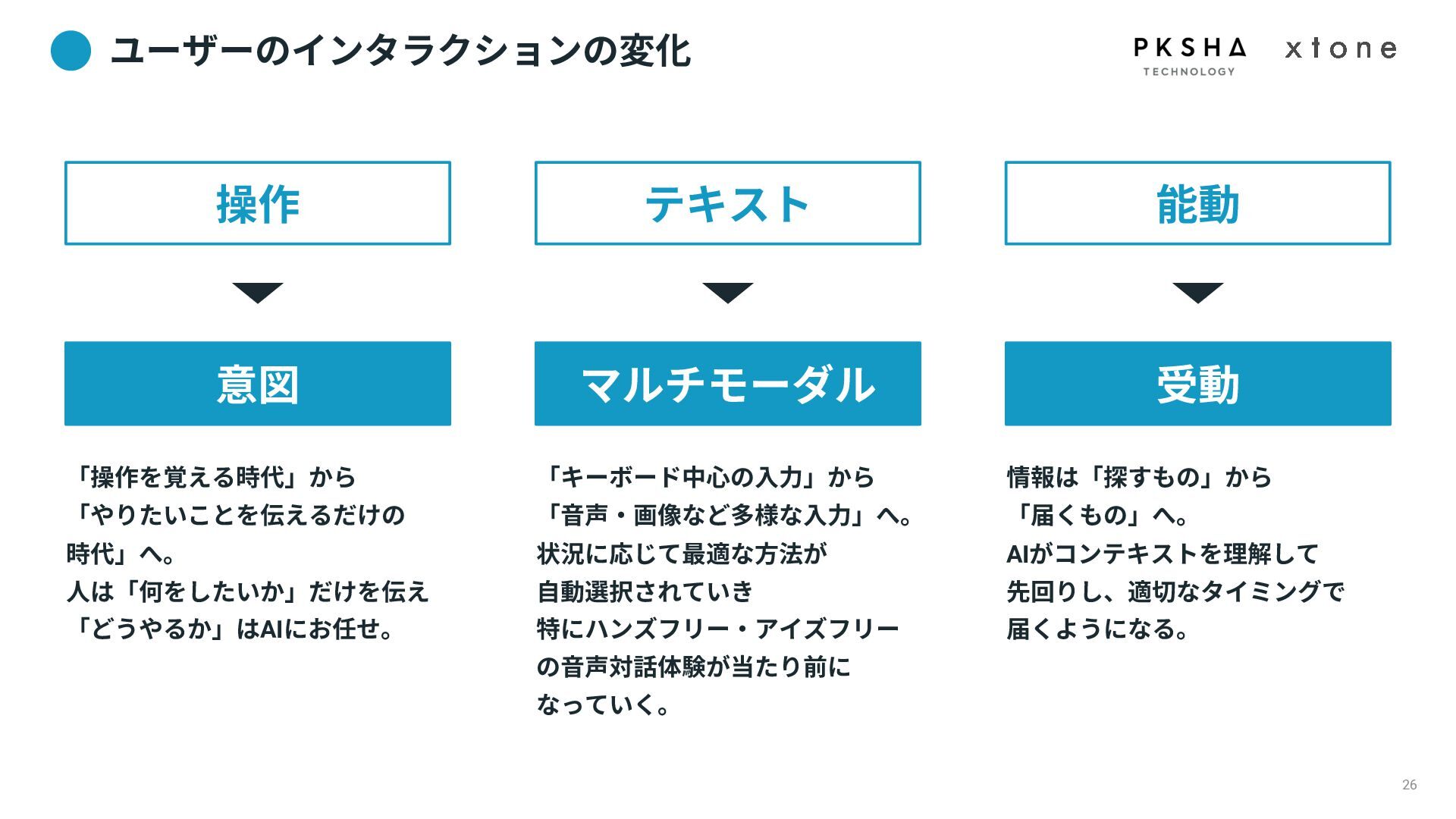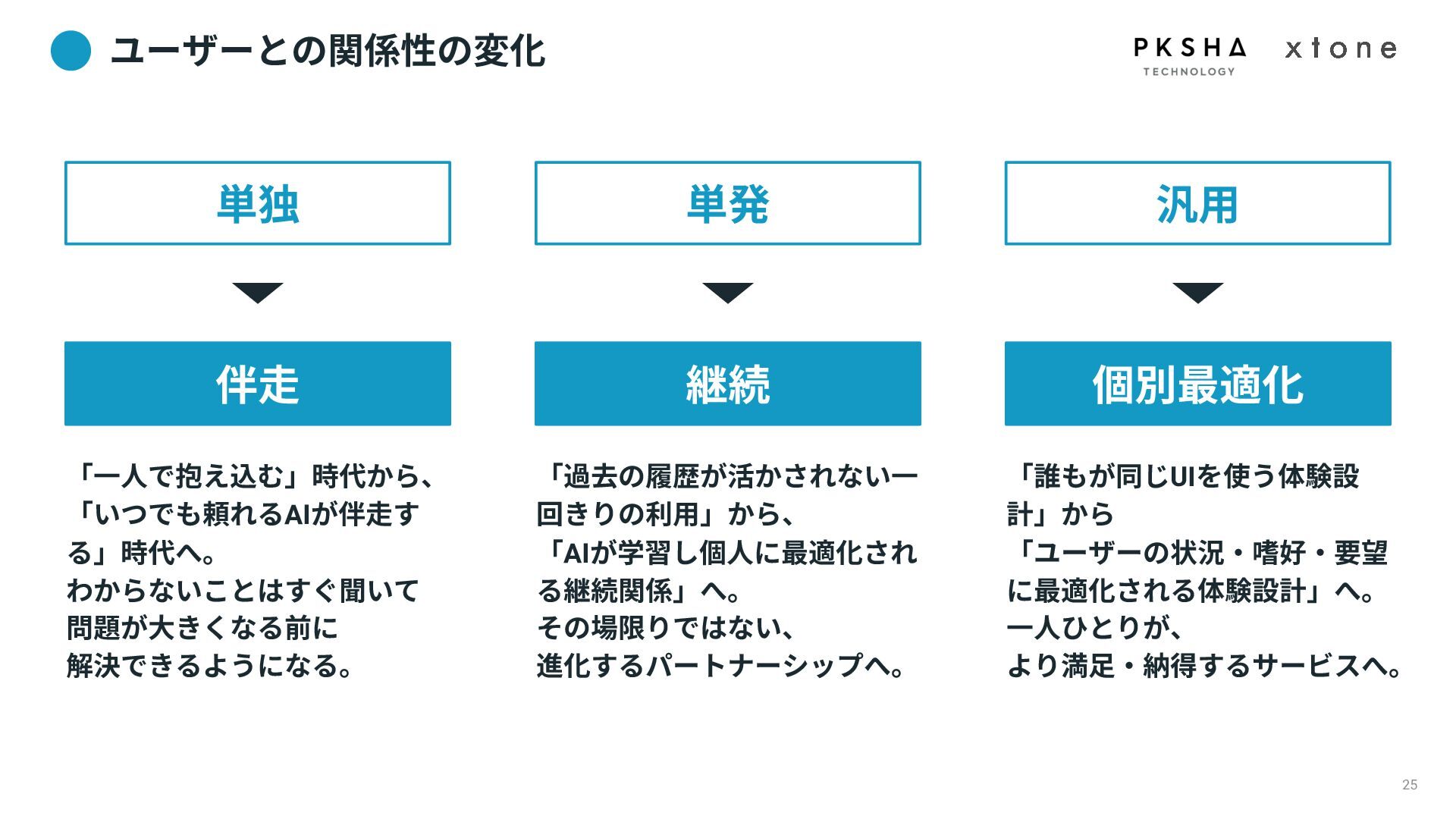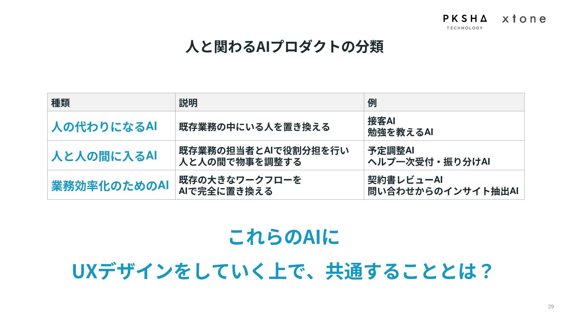 01. UI/UXデザインの現場におけるAI活用の現状 02. AI時代におけるUXデザイン変化 03. AIプロダクトのUXデザインのアプローチ 04. PKSHA Technologyグループでのワンストップ支援