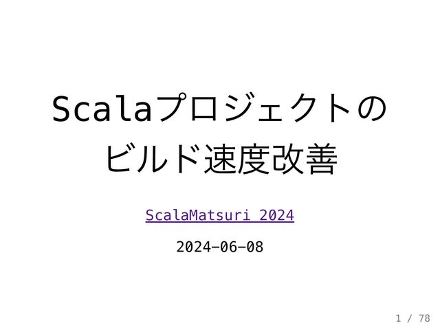 Scalaプロジェクトの ビルド速度改善 ScalaMatsuri 2024 2024-06-08 1 / 78