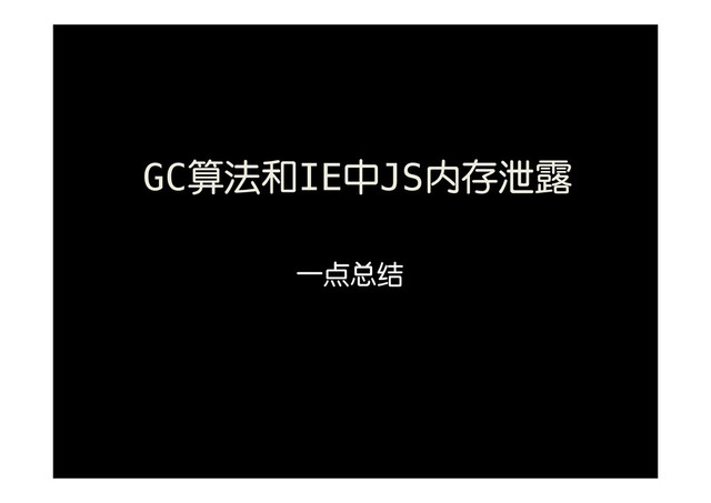 BOM and DOM are COM, COM使用引用计数 • IE9 makes BOM and DOM objects into true JS object IE: window.!CollectGarbage() Opera (>=7): window.opera.collect()