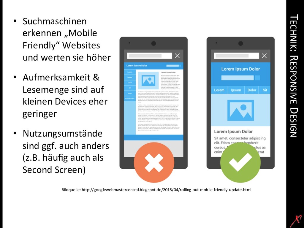 werten sie höher • Aufmerksamkeit & Lesemenge sind auf kleinen Devices eher geringer • Nutzungsumstände sind ggf. auch anders (z.B. häufig auch als Second Screen) Bildquelle: hfp://googlewebmastercentral.blogspot.de/2015/04/rolling-out-mobile-friendly-update.html