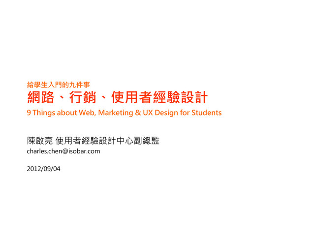 給學生入門的九件事 網路、行銷、使用者經驗設計 9 Things about Web, Marketing & UX Design