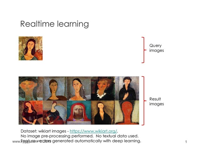 type affecting tomato crop. Photos are from the same plant. Dataset: 80K plant leaf images of different crops https://plantvillage.org/ No image pre-processing performed. No textual data used. Feature vectors generated automatically with deep learning. #1 #2 #3 www.xyggy.com © 2019