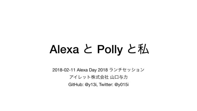 repo: https://github.com/y13i/alexaday2018lt Polly Showcase: https://www.youtube.com/watch?v=qn1vHEmlcVs 外郎売: https://www.youtube.com/watch?v=FKKUzABWBHk&t=6s