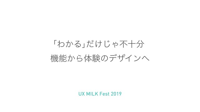 「わかる」だけじゃ不十分 機能から体験のデザインへ / UX MILK Fest 2019