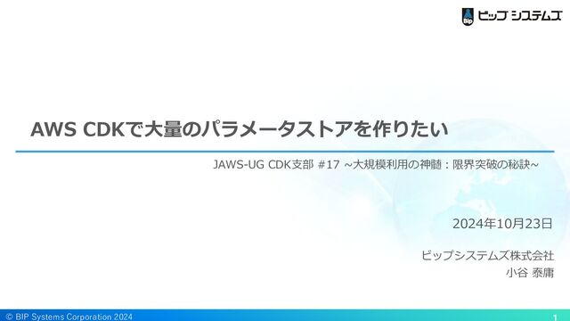 3 © BIP Systems Corporation 2024 本日のテーマ CDKで大量のパラメータストアを作る