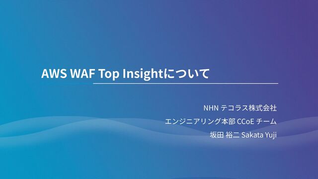 AWS WAFコンソールを開くだけで、Top Insightが「このようなIPからのリクエス トが多い」「どのようなURI パスにアクセスが来ている」 などの情報を視覚的に⾒せてくれるようになりました。 Amazon CloudWatch Logs AWS WAF ▪AWS WAF コンソールに新しい Top Insights (上位のインサイト) のビジュアライゼーションを追加 https://aws.amazon.com/jp/about-aws/whats-new/2025/01/aws-waf-console-top-insights-visualizations/
