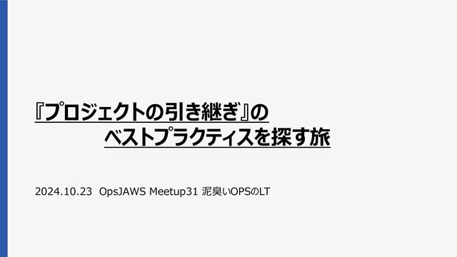 『プロジェクトの引き継ぎ』の ベストプラクティスを探す旅 2024.10.23 OpsJAWS Meetup31 泥臭いOPSのLT