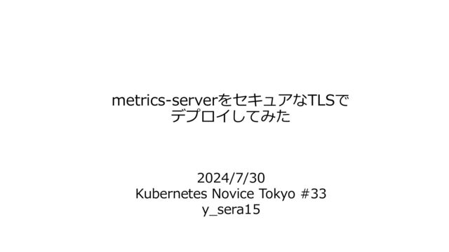 metrics-serverをセキュアなTLSで デプロイしてみた 2024/7/30 Kubernetes Novice Tokyo #33 y_sera15