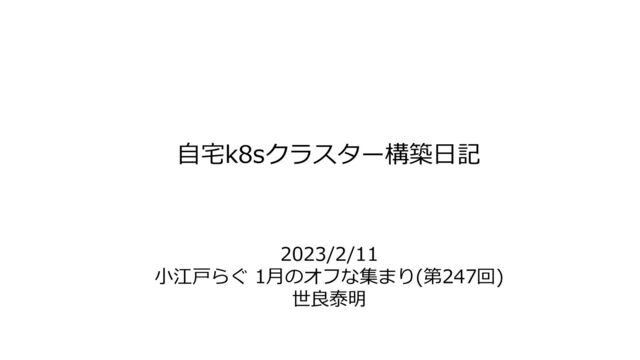 自宅k8sクラスター構築日記 2023/2/11 小江戸らぐ 1月のオフな集まり(第247回) 世良泰明