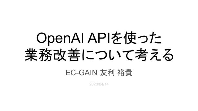 OpenAI APIを使った 業務改善について考える EC-GAIN 友利 裕貴 2023/04/14