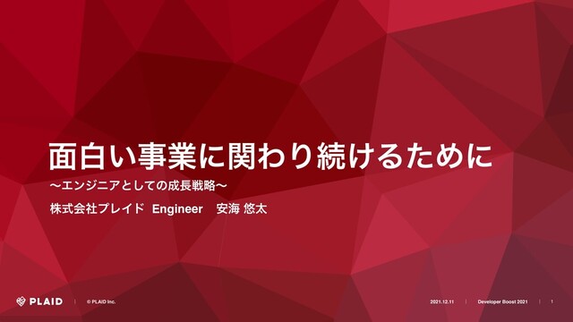 2 2021.12.11ɹɹʛɹɹDeveloper Boost 2021ɹɹʛɹ ɹɹʛɹɹ© PLAID Inc. ࣗݾհ ҆ւ ༔ଠ