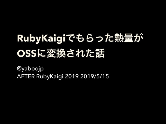 RubyKaigiͰΒͬͨྔ͕ OSSʹม͞Εͨ @yaboojp AFTER RubyKaigi 2019 2019/5/15