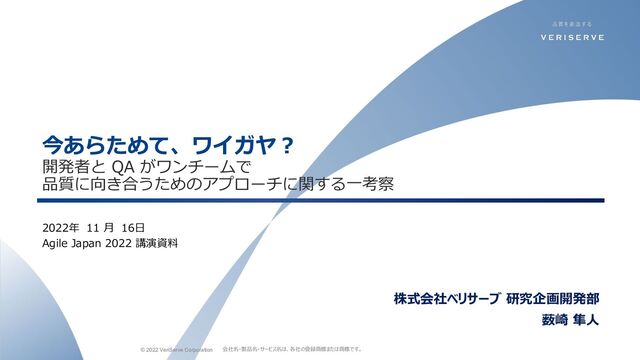 (QC: Quality Control) n 1960〜1970年代から⾏われている、現場の⼈々による品質に関する話し合い・改善活動 n TQC(Total Quality Control)の⼀環 u 後にTQM(Total Quality Management)へ発展し、ISO 9000シリーズの基礎となる “QCサークルとは、第⼀線の職場で働く⼈々が 継続的に製品・サービス・仕事などの質の管理・改善を⾏う⼩グループである。” 出典:「QCサークル活動(⼩集団改善活動)」 (https://www.juse.or.jp/business/qc/#) n 特徴 u 職位に関係なく参加する全社的な活動 u テーマを持って⼩集団で活動 品質に関するワイガヤ的な要素がありそうだなあ アジャイル開発の中でこんな活動をやってみたらどうなるだろうか 23/30