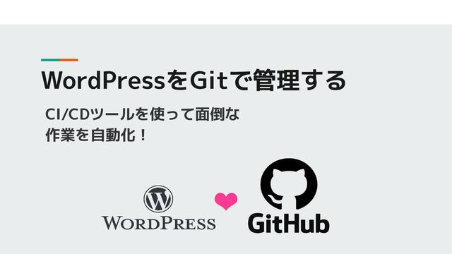 WordPressをGitで管理する CI/CDツールを使って面倒な 作業を自動化!