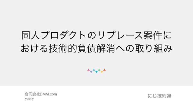 © DMM.com ಉਓϓϩμΫτͷϦϓϨʔεҊ݅ʹ ͓͚Δٕज़తෛ࠴ղফͷऔΓΈ ʹٕ͡ज़ࡇ ߹ಉձࣾDMM.com yachiy