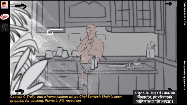 T V C S t o r y b o a r d s b y @ y a c h z z u C a me r a C T r o l l y - i n t o a h o me k i t c h e n w h e r e C h e f S a n t o s h S h a h i s s e e n p r e p p i n g f o r c o o k i n g . P l a n t s i n F G - r e v e a l s e t