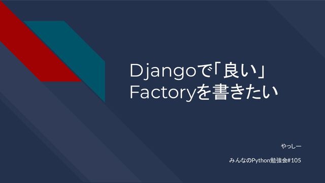 Djangoで「良い」 Factoryを書きたい やっしー みんなのPython勉強会#105