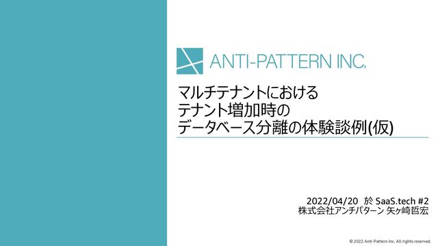 © 2022 Anti-Pattern Inc. All rights reserved. マルチテナントにおける テナント増加時の データベース分離の体験談例(仮)