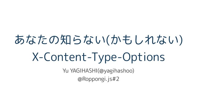 あなたの知らない(かもしれない) X-Content-Type-Options Yu YAGIHASHI(@yagihashoo) @Roppongi.js#2