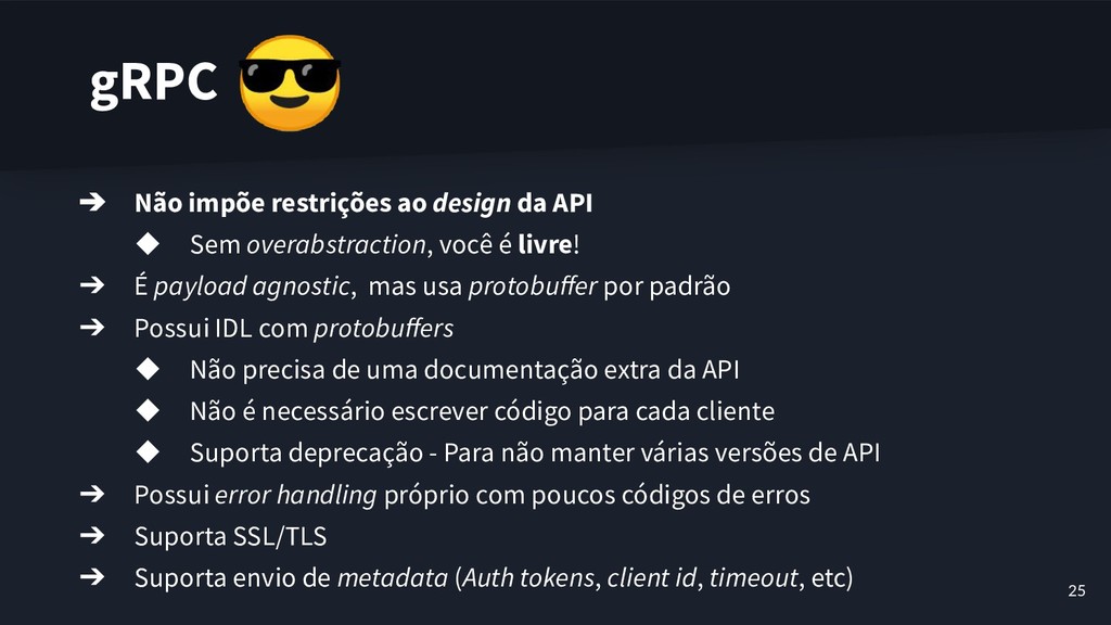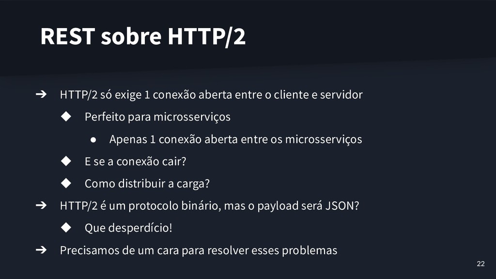 Essa palestra tem o objetivo de apresentar o gRPC como uma solução aos problemas do REST para APIs, principalmente para microsserviços. Será trazido um pouco do contexto histórico da web e de comunicação entre processos (IPC), para entendermos como chegamos até aqui, levantando alguns questionamentos como “RPC sobre HTTP” e “REST com HTTP/2”. Também serão abordados os principais conceitos e características do gRPC, mostrando seus prós e contras, e exemplos de uso do gRPC com protobuffers.