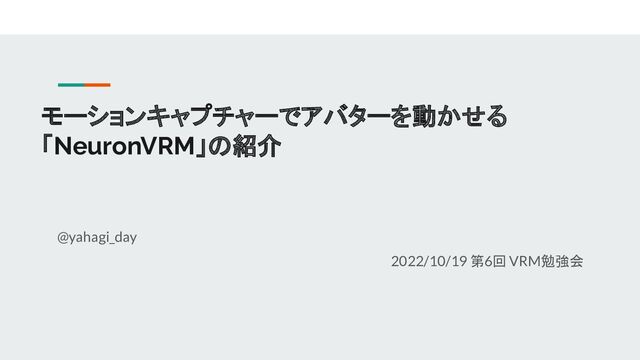 モーションキャプチャーでアバターを動かせる 「NeuronVRM」の紹介 @yahagi_day 2022/10/19 第6回 VRM勉強会