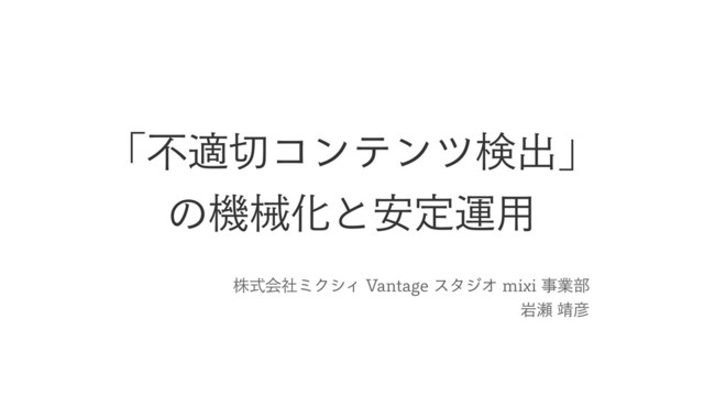 株式会社ミクシィ Vantage スタジオ mixi 事業部 岩瀬 靖彦